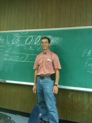 Don doing what he likes best – Teaching Cursive