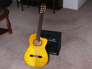 I purchased the Gibson ES 125 new, from Lammert’s Music Store in Cincinnati, Ohio in the mid 60’s. I string it with heavy, flatwound strings. It has ultra low action and is a joy to play. The Takamine sounds great through the little 10W Peavey Acoustic. A Zoom acoustic effects peddle adds real character to the sound. The Zoom’s reverb also works great with the Harmonica. The Yamaha FGX-413SC was purchased from Caldwell’s Music Store here in Odessa, TX. My wife bought me a VOX DA 15 guitar amp for Christmas 2009. It has awesome tones for a small amp.